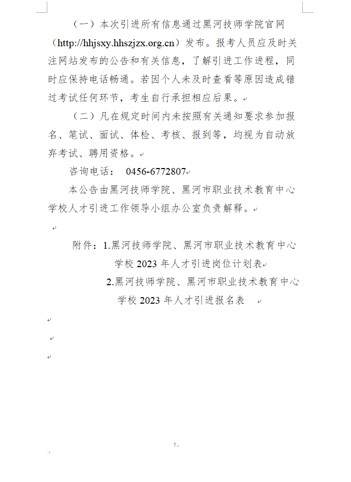 附件1:黑河技师学院、黑河市职业技术教育中心学校2023年人才引进岗位计划表.rar